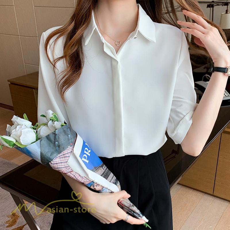 ワイシャツ 白シャツ レディース 5分袖 無地 きれいめ ビジネスシャツ サマーシャツ オフィス フォーマル きれいめ Ol 通勤通学 着回し おしゃれ ゆったり 上品 Yliuru アジアンストア 通販 Yahoo ショッピング